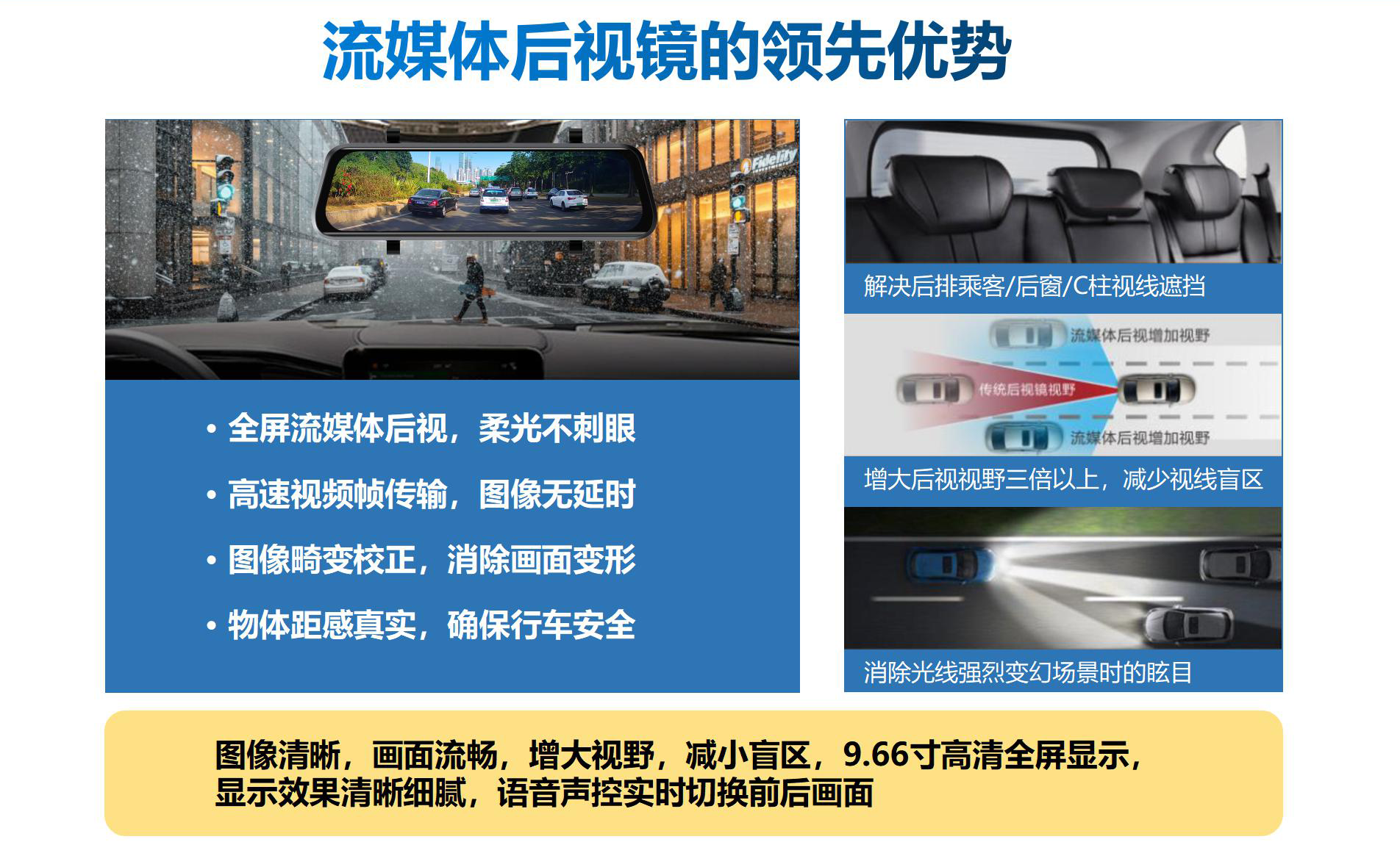 以屏代鏡:9.66寸IPS車(chē)規級高清顯示屏,整體替換原車(chē)內后視鏡